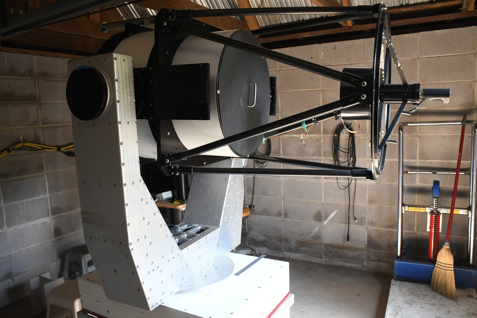 The roll roof building now houses the RC Optical Systems 0.5-meter Azari telescope which was a gift to the university from Dan Azari in 2018. The instrument is on a fast slewing altitude-azimuth mounting with precision encoders on both axes enabling tracking of Earth-orbiting objects, as well us the usual celestial ones. It will be used for tracking and passive optical and near-infrared characterization of artificial satellites, and for student projects such as transient object followup and direct color imaging that can be done remotely through Shared Skies.