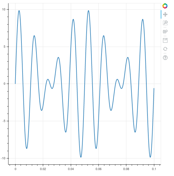 A plot of the sum of two sines using Bokeh displayed in Firefox.