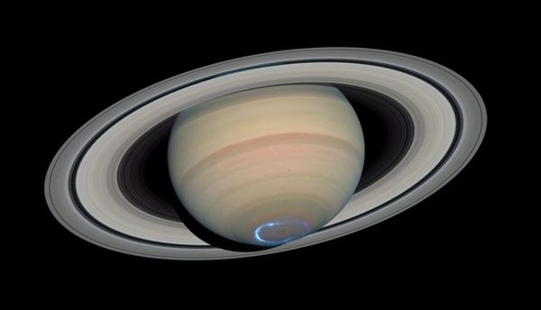 Saturn's axis is tipped about 27 degrees from the plane of its orbit, and most of the time we either look down on the "north" of the rings, or up on the "south". Once every 15 years from Earth we see the rings edge-on, and they seem to almost disappear from view. That happened most recently on September 4, 2009.