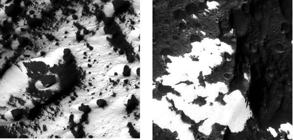 and "rocky" surfaces. The rocks are probably made of water ice.