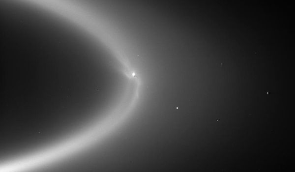 Euceladus' thin nebulous ring around Saturn is just outside the bright rings