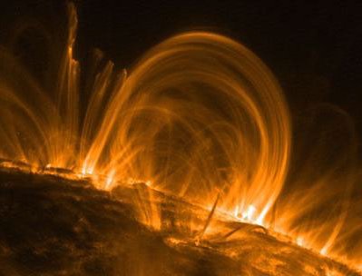 About three or four days after a solar flare and sunspot activity, when an increase the number of energetic the particles reaches Earth, they are directed by Earth's magnetic field toward the north and south magnetic poles. There, they collide with Earth's upper atmosphere and create dynamic aurora that are widely visible at night.