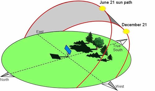 Sun's Path at Summer and Winter Solstice in the Northern Hemisphere
