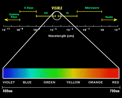 Earth's atmosphere absorbs energetic penetrating X-rays that could cause deep genetic damage. Ultraviolet light with wavelengths, more energetic than violet light, is mostly blocked by the ozone layer. Where there are holes in the ozone layer, such as near Australia, the incidence of skin cancer increases. Infrared light with wavelengths a little longer than red light, is felt as "heat" from a heat lamp. Any warm body gives off invisible infrared light. Microwaves have still longer wavelengths, that penetrate and cook food efficiently. Radio waves are photons with very low energy, long lazy wavelengths, that can carry music through space by changes in frequency and amplitude of the waves.