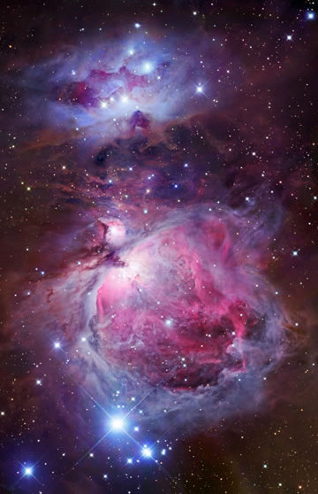 On Orion's shoulder is the red supergiant star Betelgeuse. A dying star that has expanded before its final collapse, it is one of the largest stars known. At 1000 times the Sun's diameter, if it were in our Solar System it would extend beyond Mars and enclose all the terrestrial planets.