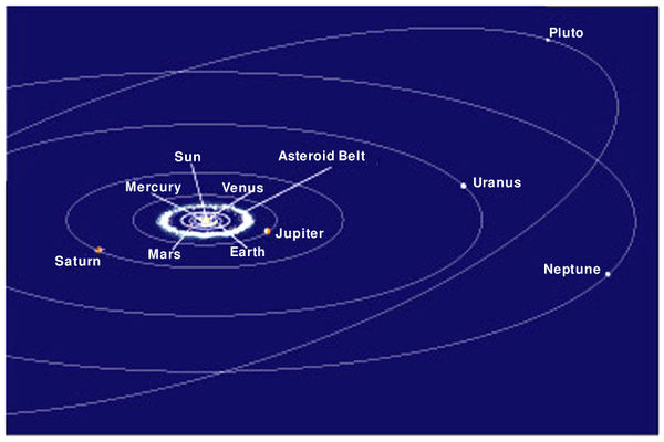 Neptune is 30 AU from the Sun, and takes almost 165 years to complete its orbit. Mercury, close to the Sun at only 0.4 AU, travels around the Sun every 3 months. The distance from the Sun to the Kuiper Belt is about 50 AU. Comets traveling from the Kuiper Belt or nearer, travel for under 200 years. Pluto, once considered a planet, is a Kuiper Belt object. Its orbit, which does not leave the Kuiper Belt, is about 248 Earth years.